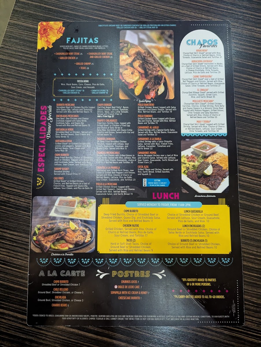 With a family-friendly atmosphere, outdoor seating, and cool decor, Chapos Tequilas & Grill is the perfect spot for gatherings. Each visit promises a culinary adventure, making it a standout in the local dining scene. Come and savor the experience!